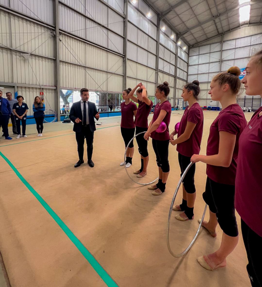 O Cônsul-Geral da Itália em Porto Alegre, Valerio Caruso, visitou a seleção italiana de ginástica rítmica no ginásio do Grêmio Náutico União, onde as “Farfalle Azzurre” (Borboletas Azuis) estão se preparando para a iminente viagem ao Rio de Janeiro, sede do Campeonato Mundial de 2025.